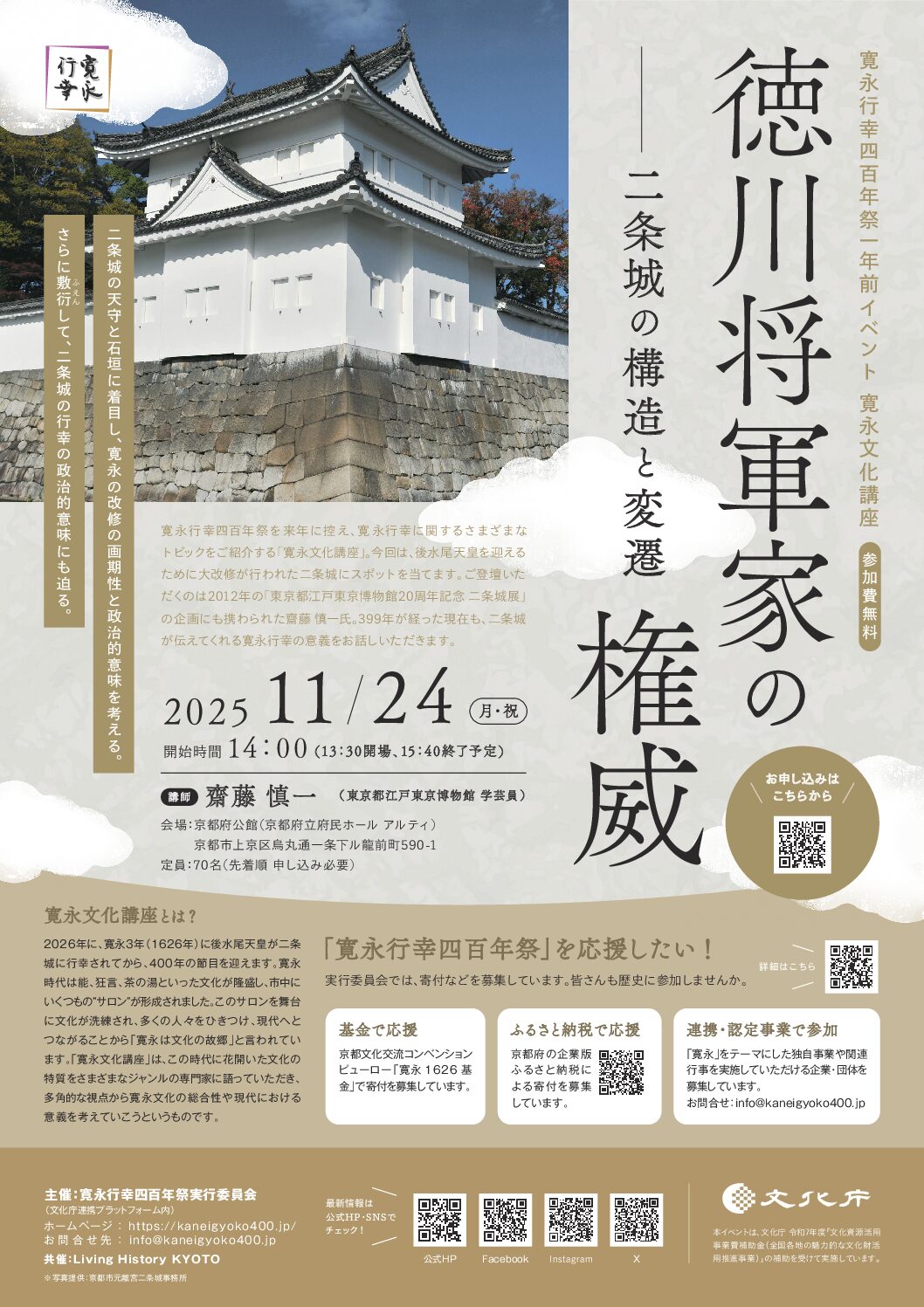 徳川将軍家の権威 ー二条城の構造と変遷ー 寛永行幸四百年祭一年前イベント