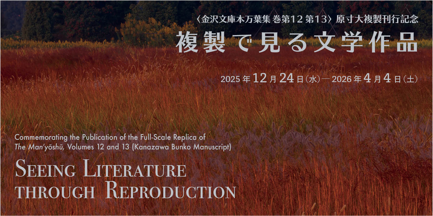 本展は、《金沢文庫本 万葉集 巻第十二・第十三》原寸大複製の刊行を記念し、便利堂が120年にわたりコロタイプ技術で制作してきた、日本文学の古典史料の複製を紹介するものです。実物と同じ大きさや質感を備えた精巧な複製を通して、古典作品をより立体的に、そして身近に体感していただければ幸いです。